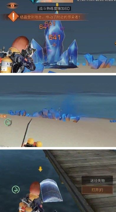 3、然后跟随地图的指引找到三处晶石,破坏晶石将会吸引到感染者来袭,我们需要全部清理掉。