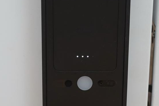 如果电池没有及时补充,在把手的底部专门设计了一个USB-C的应急供电口,在门铃电量耗尽的时候可以用来接上充电宝开门,充电时,通过门锁面板上的4个指示灯可以查看剩余电量。