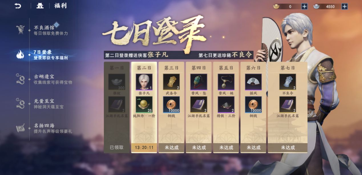 三、七日登录,必领极品侠客张子凡