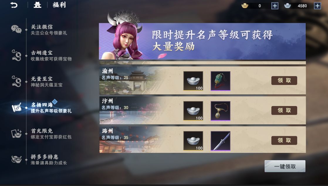 闯荡江湖!每日完成游戏内江湖之路即可获得活跃值,活跃度达到指定进度后,即可领取大量奖励。