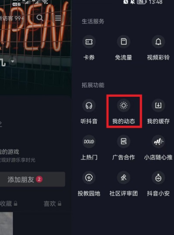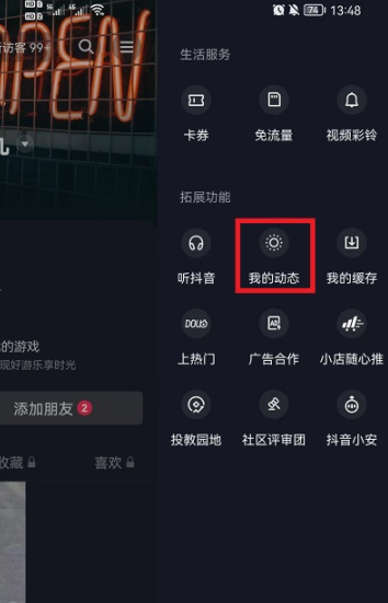 3、更多功能界面,用户就可以看到【我的动态】去进入其中查看动态。