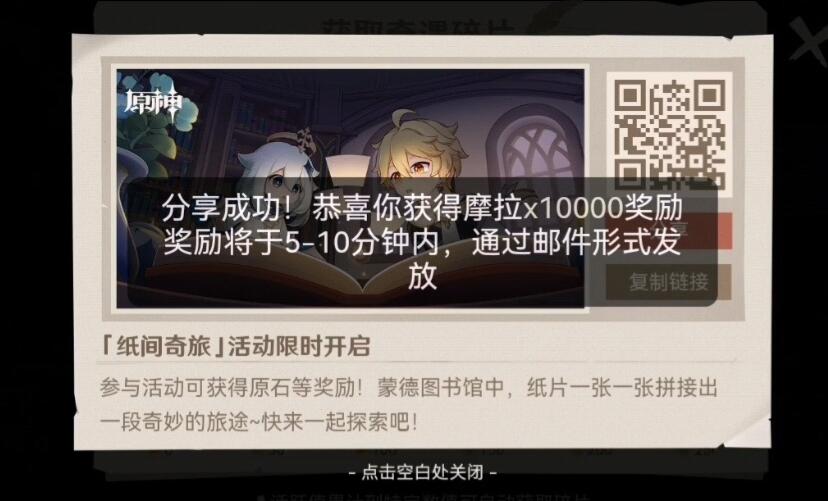 可获得摩拉x10000(昨天已经拿过奖励的,不用再次分享)