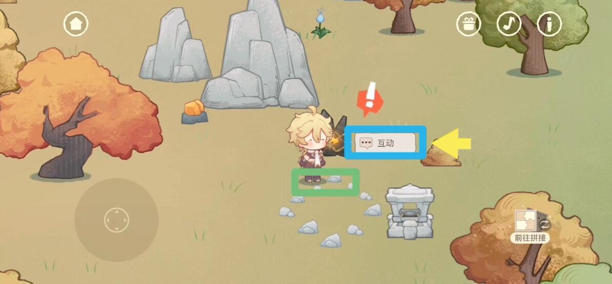 第一个奇遇是岩种子,靠近对话,注意唯一触发点似乎是图中我绿色框出来的范围