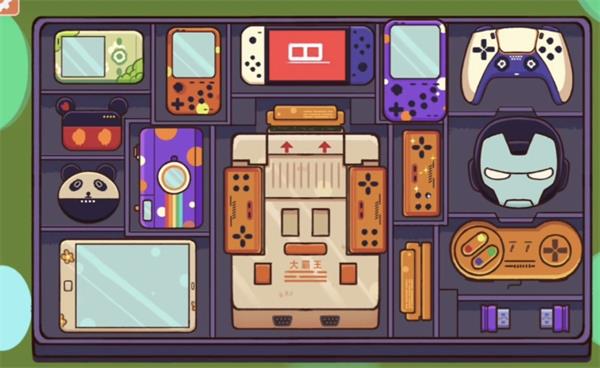 2、大霸王上放红色的游戏机,然后左边是橙色游戏机,右边是紫色游戏机,