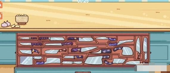 4、第四步:只要我们把菜刀都放进凹槽里面,我们这关就完成了。