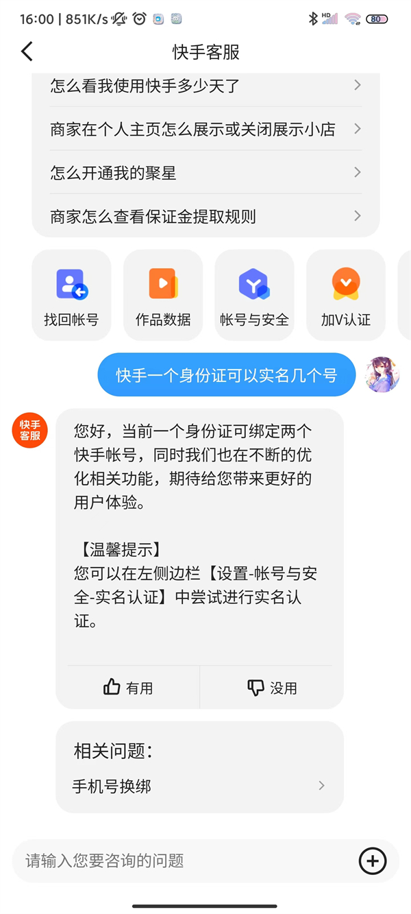 快手一个身份证可以实名认证两个号,一个身份证可绑定两个快手帐号,在帐号与安全中进行实名认证即可。