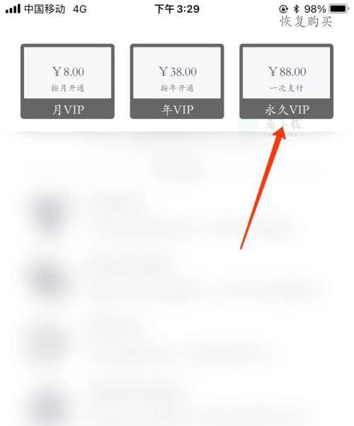 4、点击上方永久VIP选项即可