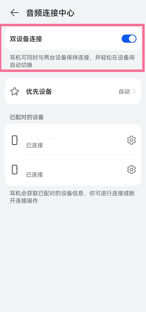 3、打开【双设备连接】右侧的开关即可。