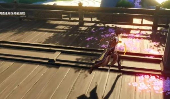 1、来到庭院之后走到阳台,我们找到地上的亮光点,如图所示。