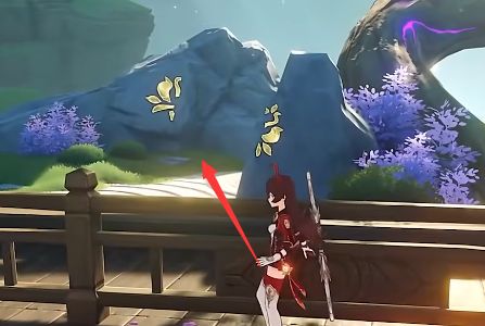 只需要移动视角将面前的石头上黄色的印花拼在一起。