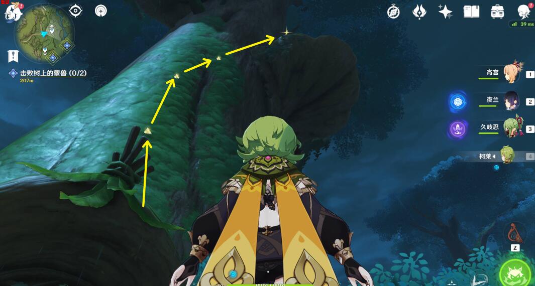 推荐爬树路线(树干上这种发光的植物可以补充体力):