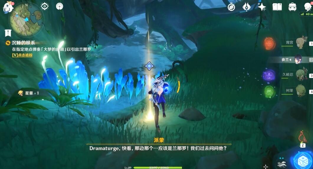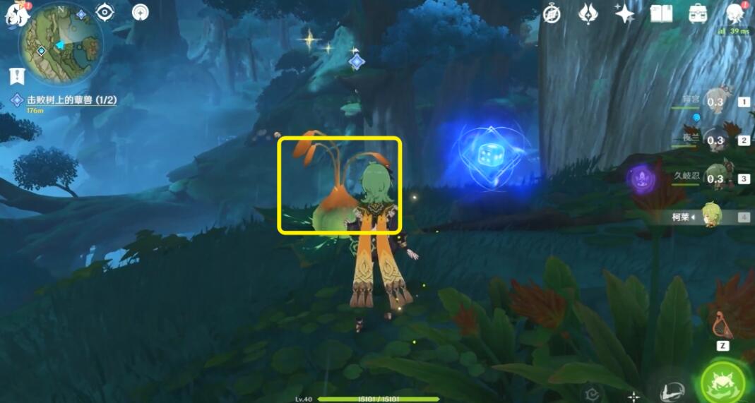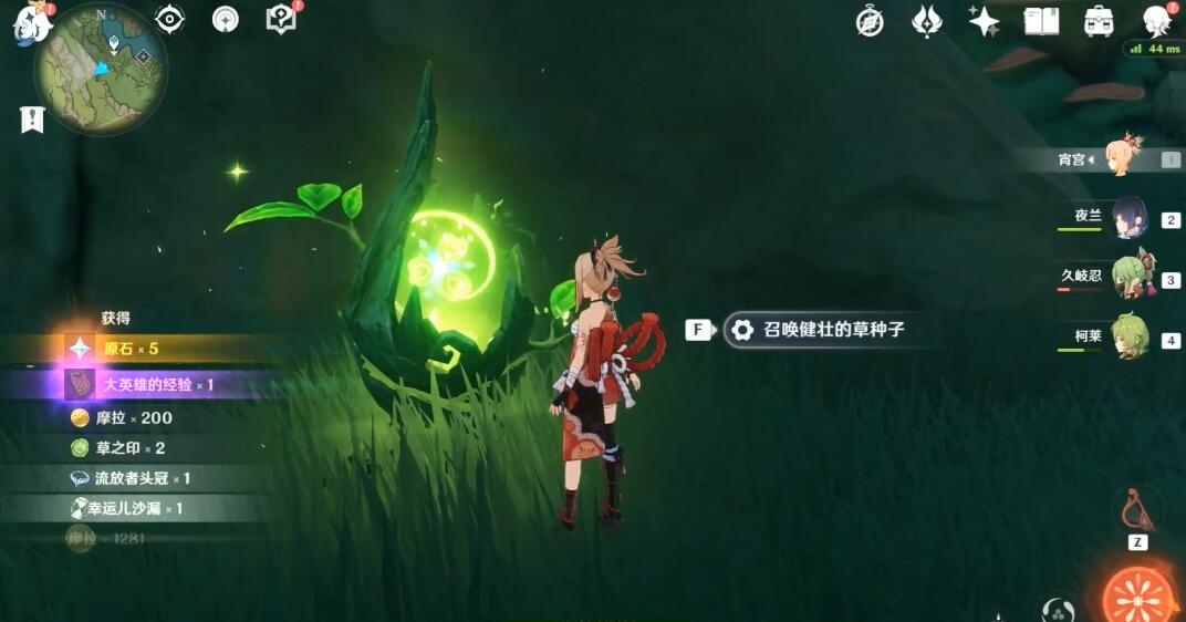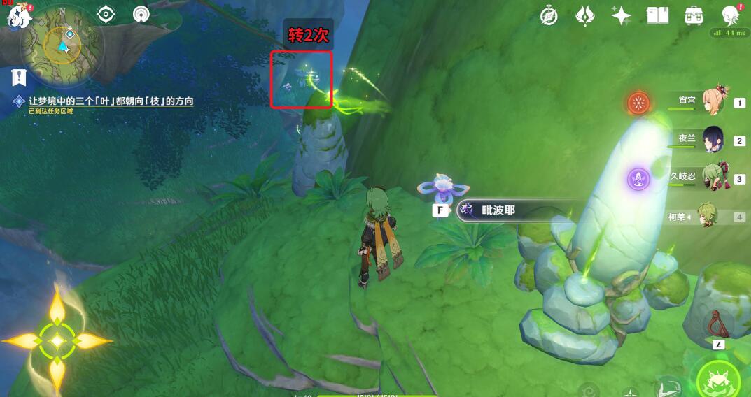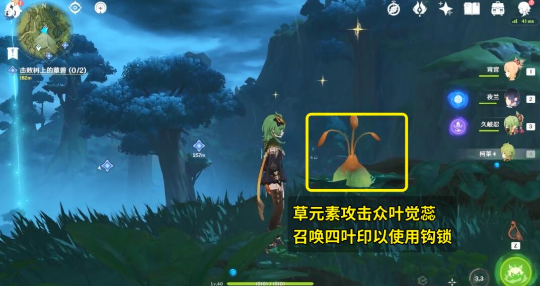 跟随绿色光芒指引找到「新枝之芽」,对其演奏,召唤健壮的草种子。