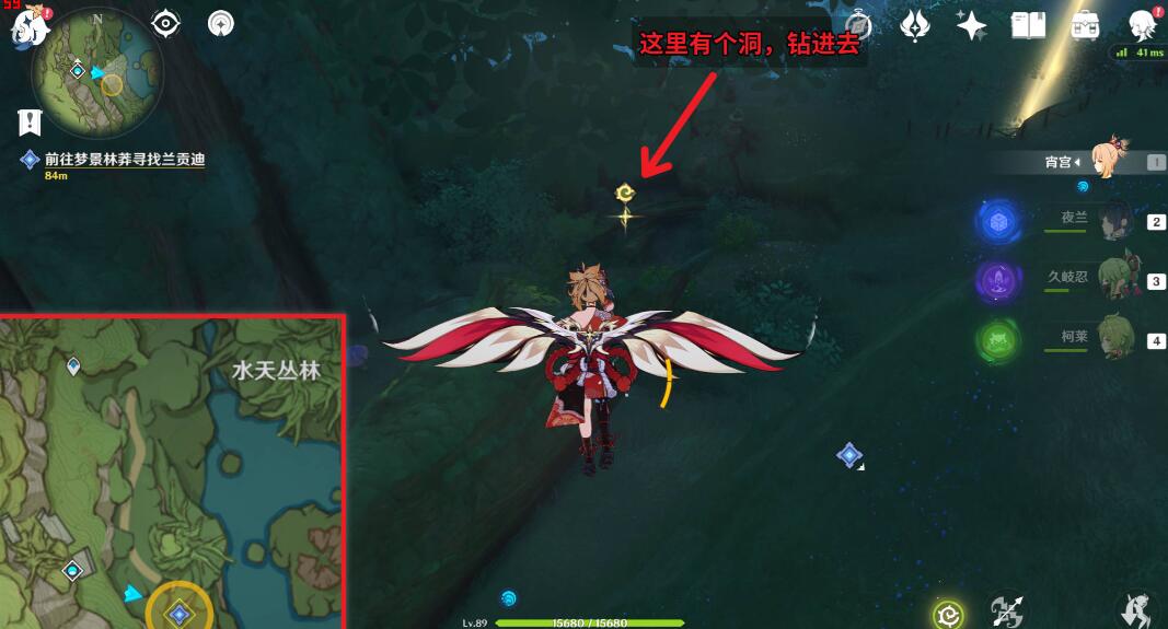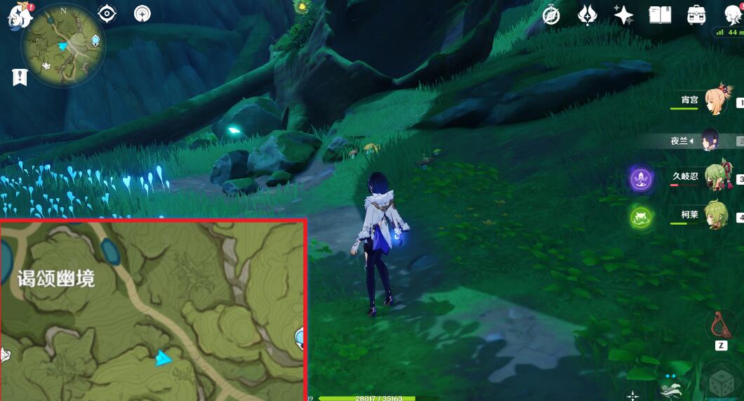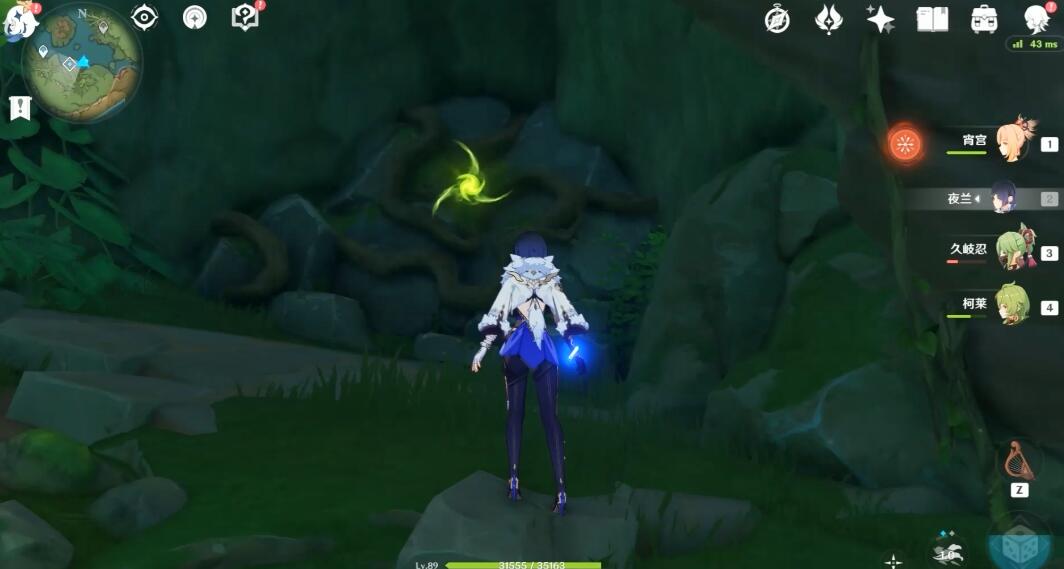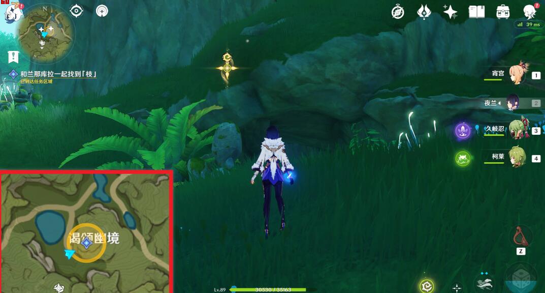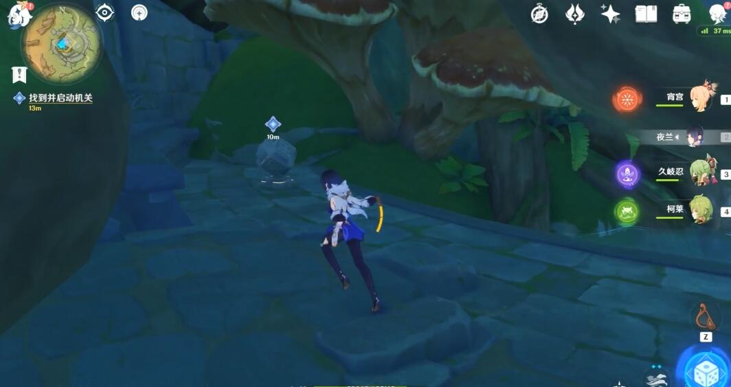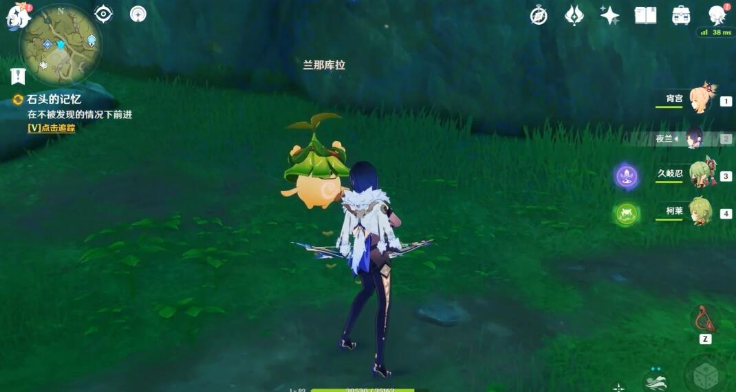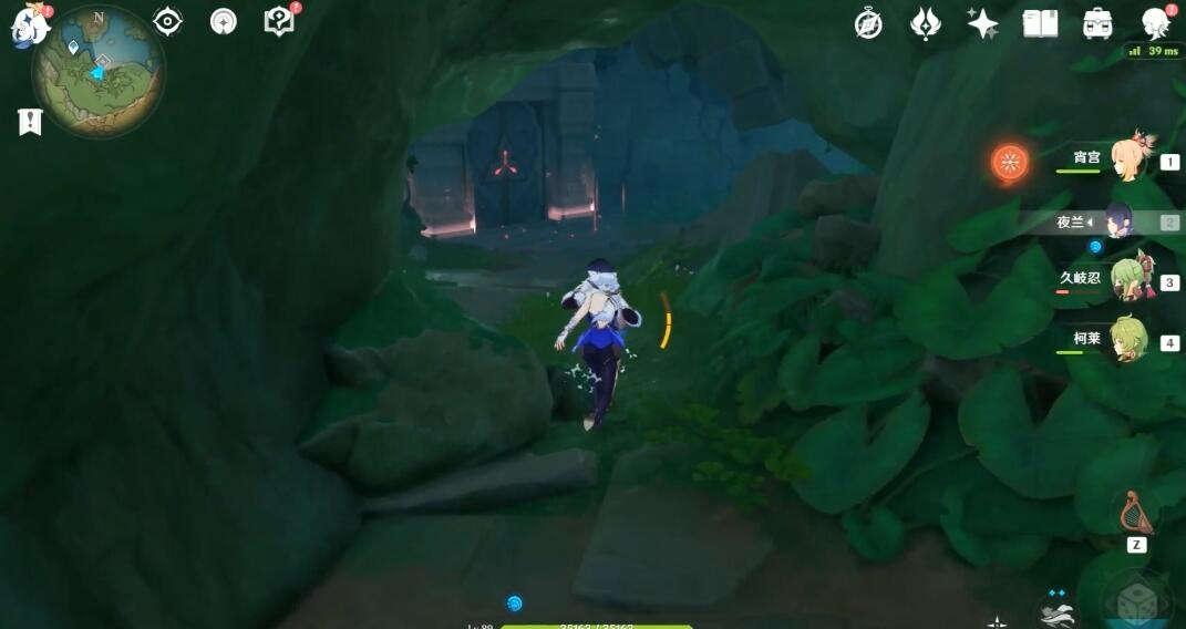 如果你还没拿到新芽迸发的曲调,你也可以携带普通的草种子,绕到下图所示(秘境背面)的这个位置击碎石头,也能打开通向秘境的路(这种方法时间卡得比较紧,建议不要尝试)。