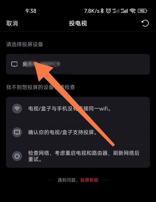 进入投屏电视界面,选择要投屏的电视设备即可。