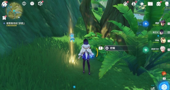 经过一番对话得知,NPC有一个梦想盒子埋在附近的大树下面,我们跟着任务指引分别来到三个地方挖掘: