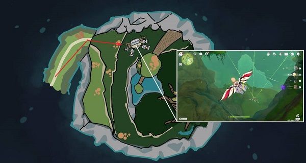 2.我们深入洞穴(途中可以看到一个石锁,可以先做)。在底部找到一个拱门,播放音乐完成挑战,西北关就消失了。