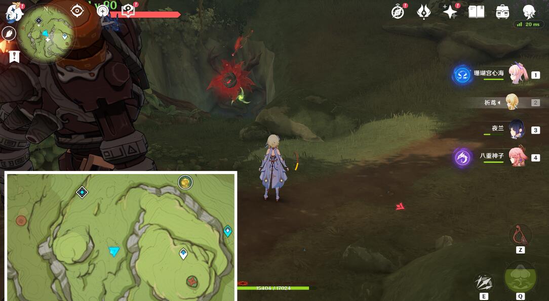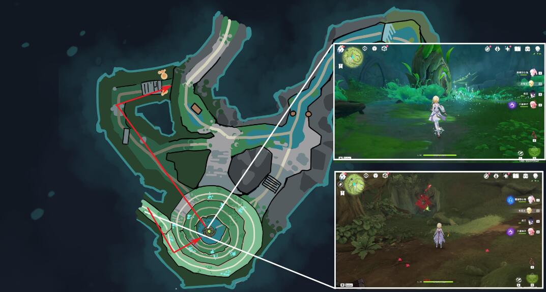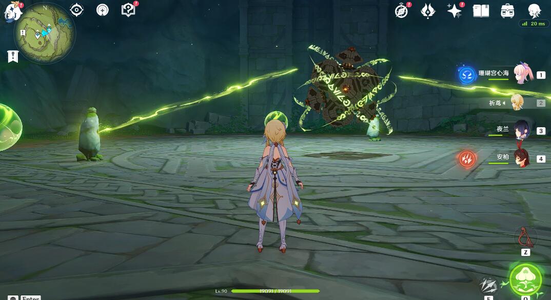 5,用火元素角色(安柏)攻击石锁,解除封印,再击败小宝