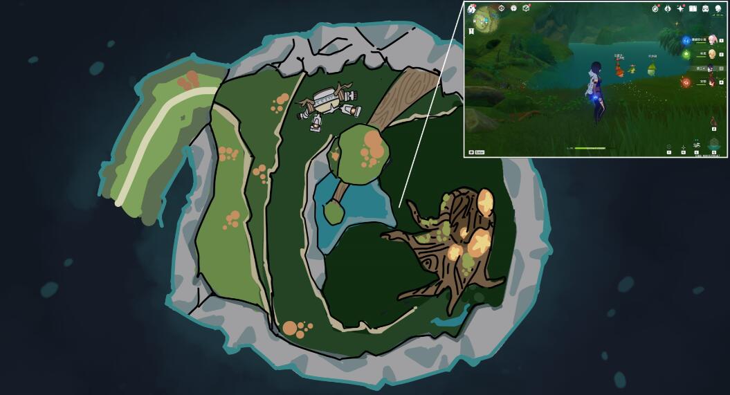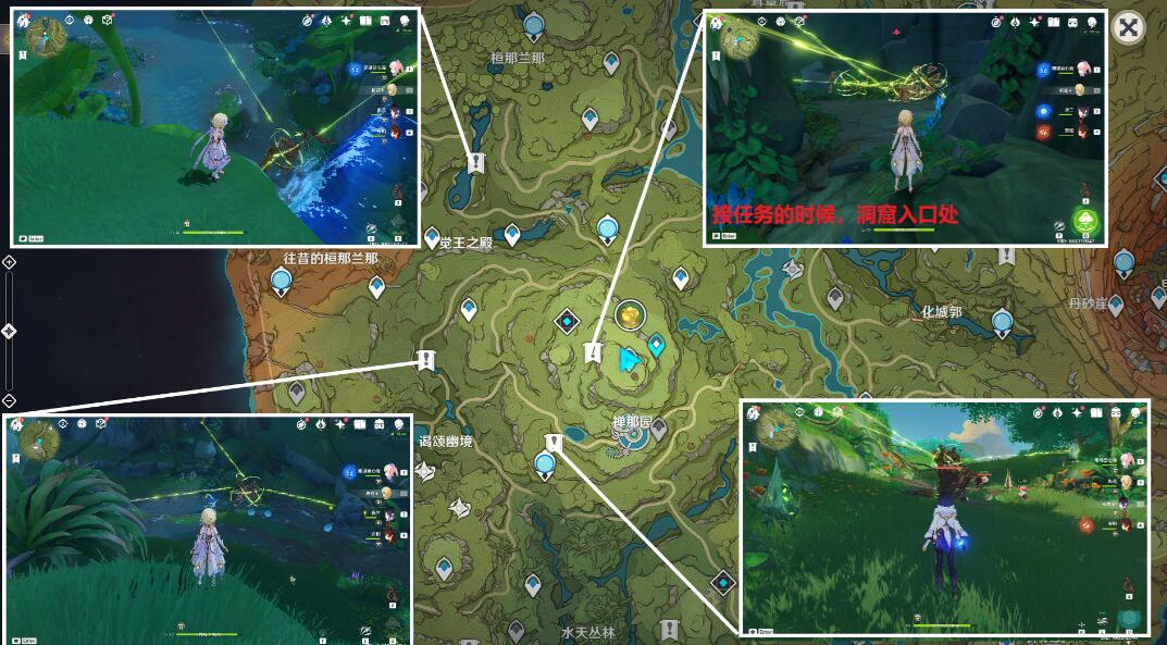 9,然后,我们回到之前接任务的洞窟,在水池旁边找到四个小精灵