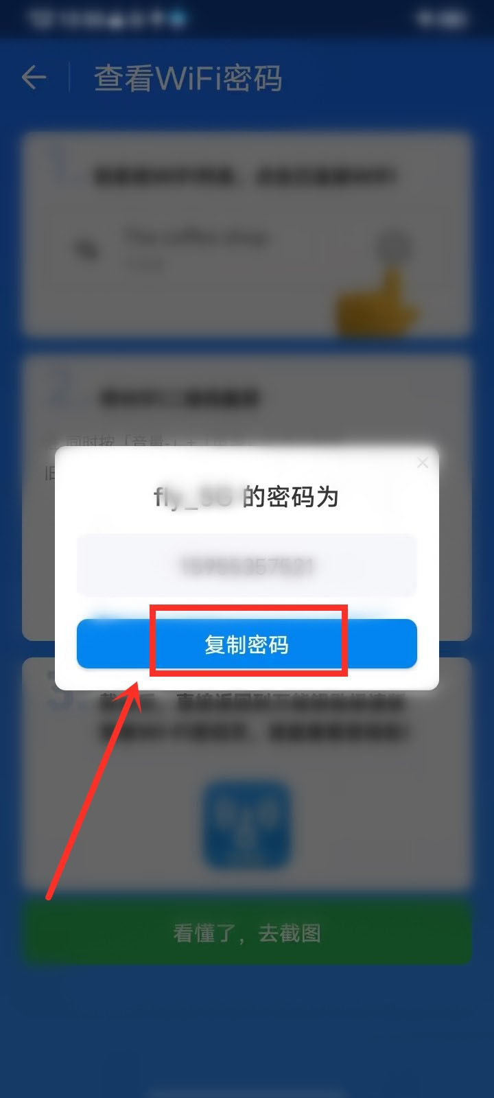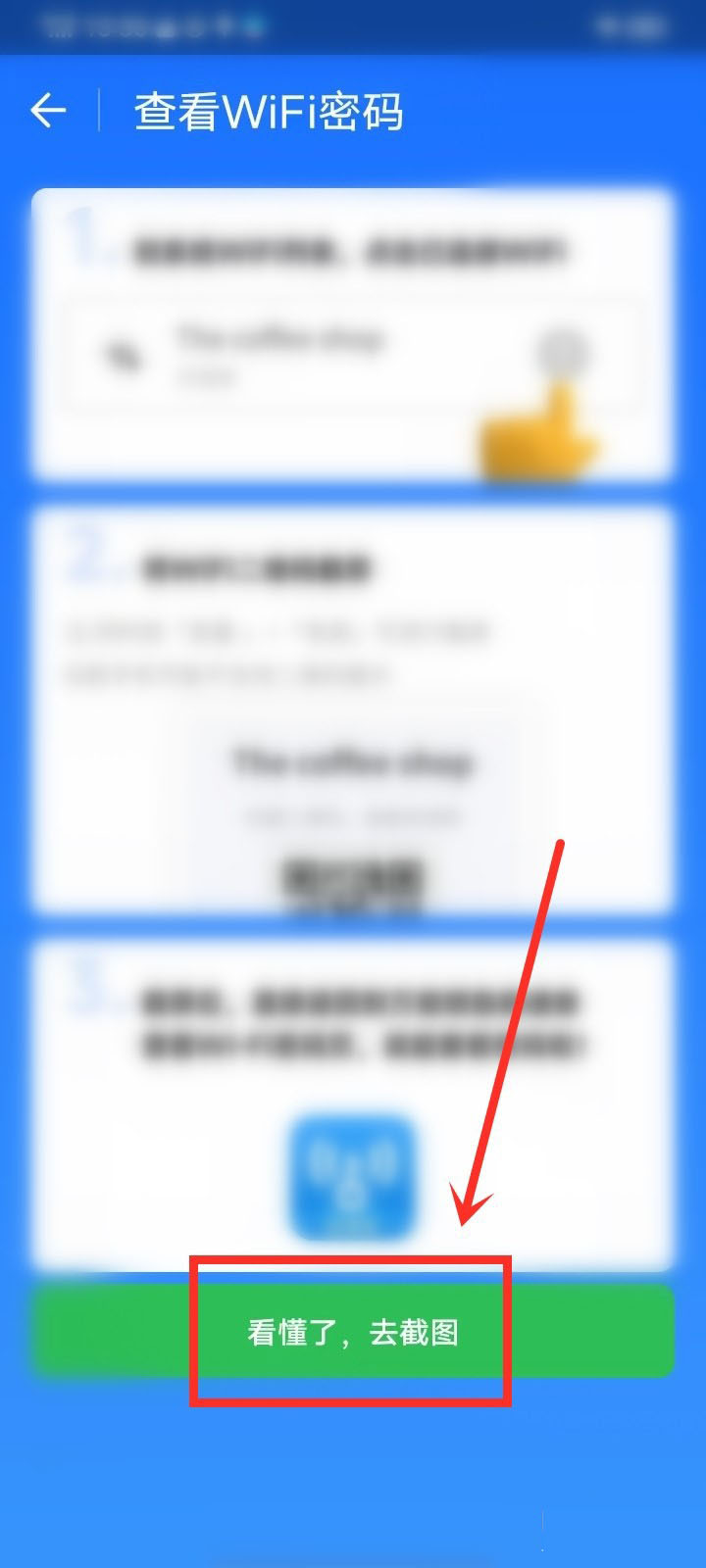 进入查看WiFi密码,点击底部看懂了去截图选项。