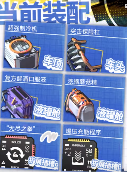 【扩展插槽】无尽之拳:在第一次手动发射<自走车>后,将自动循环执行发射;装配在扩展插槽α时使<自走车>车身颜色改变。