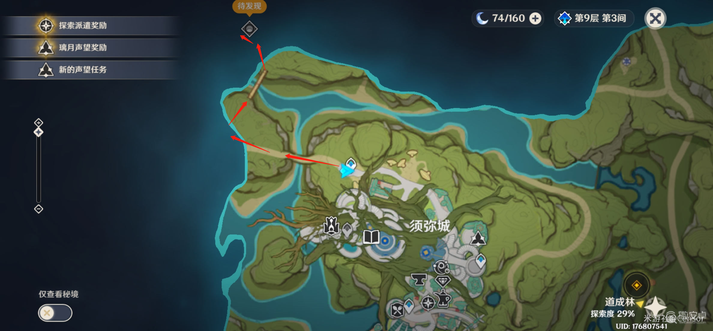 须弥城北边,无需解谜,与大门互动即可解锁秘境