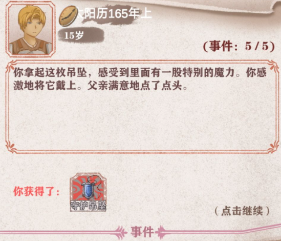 爸爸的好感度得拉,后面会给一个神器项链,效果是低于百分之40血时免伤百分之25,还是挺好用的,具体多少数值不知道,反正你去田里帮爸爸种田还能顺手加家境,何乐而不为呢。