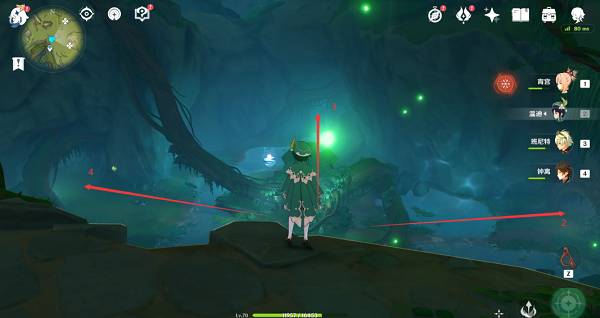 来到传送点后转身进入洞里,跟着箭头指引先来到桓摩达二
