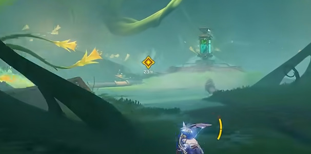 1、接取任务之后跟随任务指引来到下图中【污染区的源头】的位置。