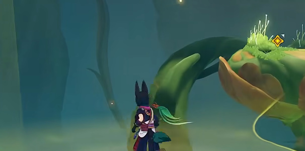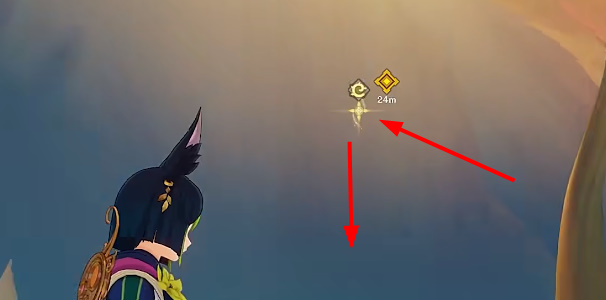 7、我们沿着任务指引一直移动,会走到下图的一个坑洞中然后掉下去,继续跟随任务指引移动即可。