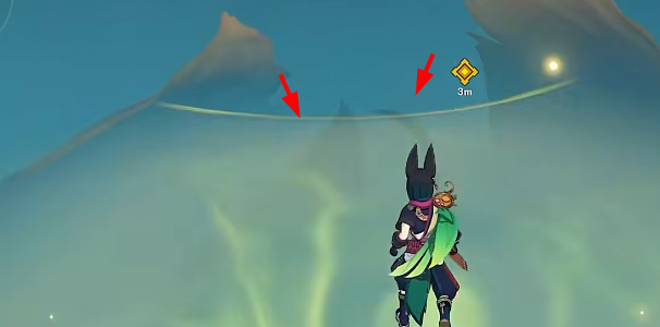9、之后我们使用牵引点移动到透明道路的边缘,向下跳。