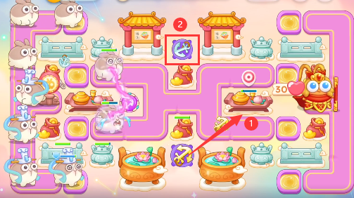 5、这一关会有不少的冰冻兔,注意给炮塔解冻。