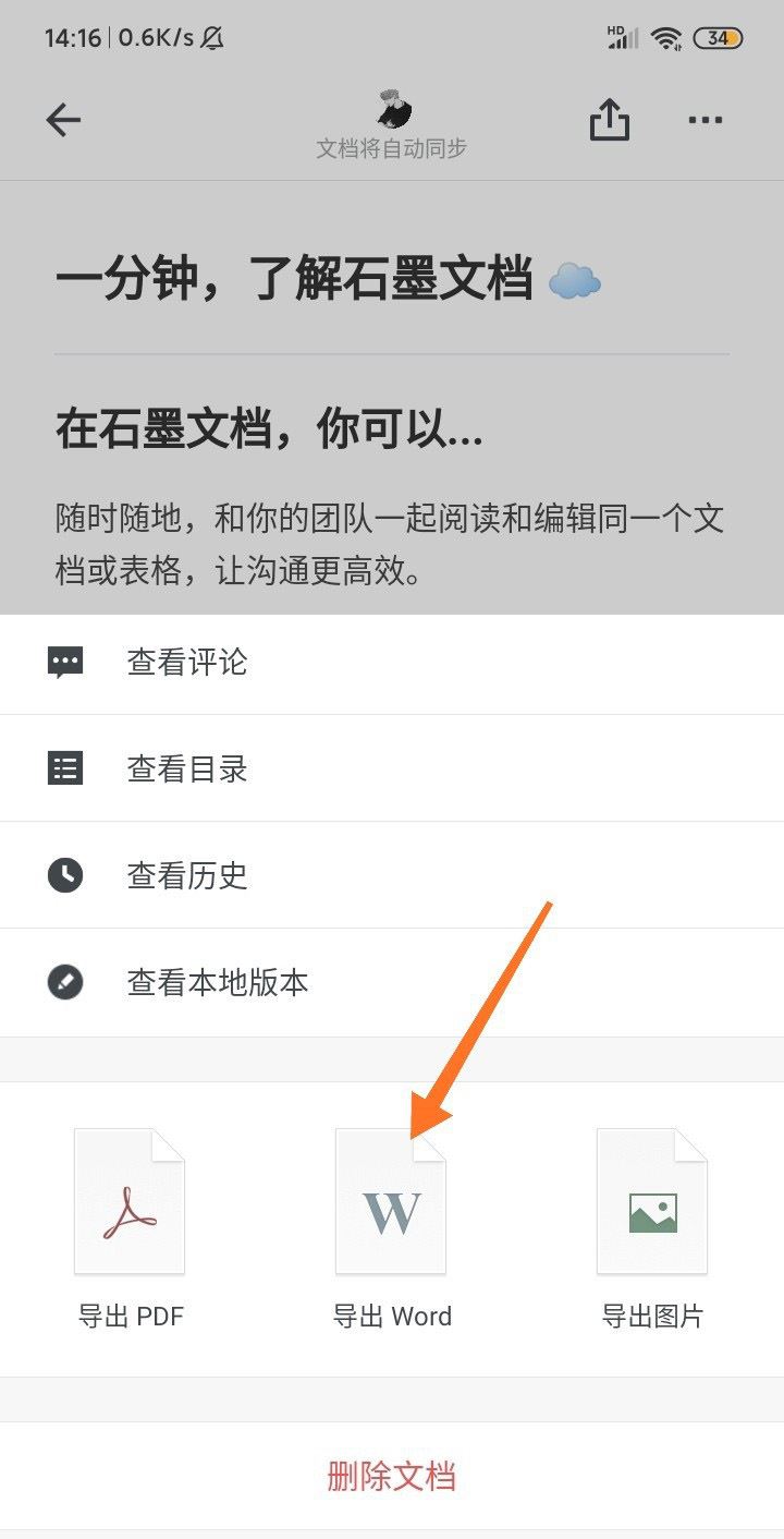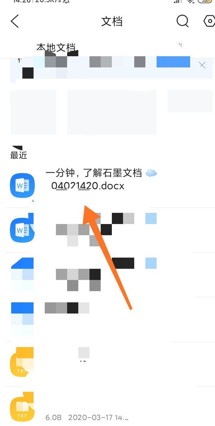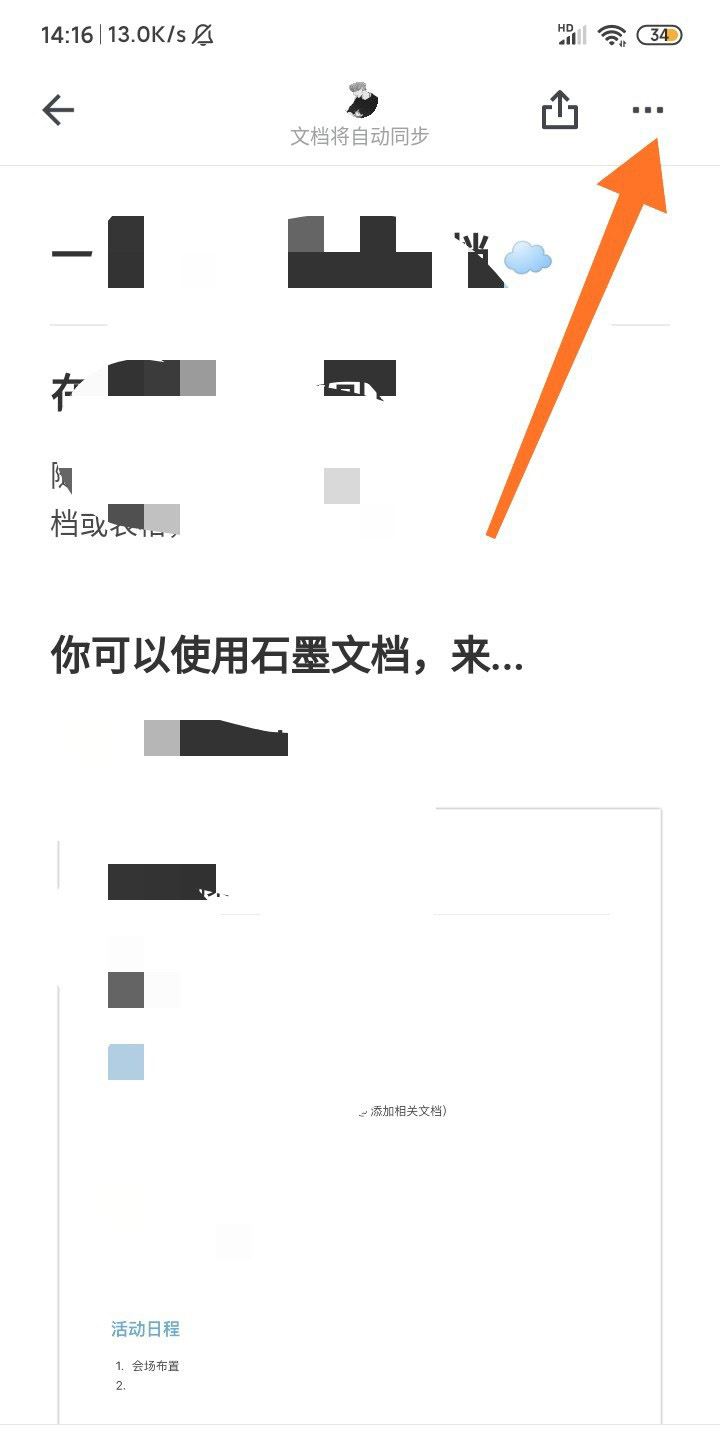 手机登录石墨文档,如下图箭头所示: