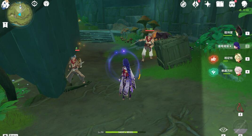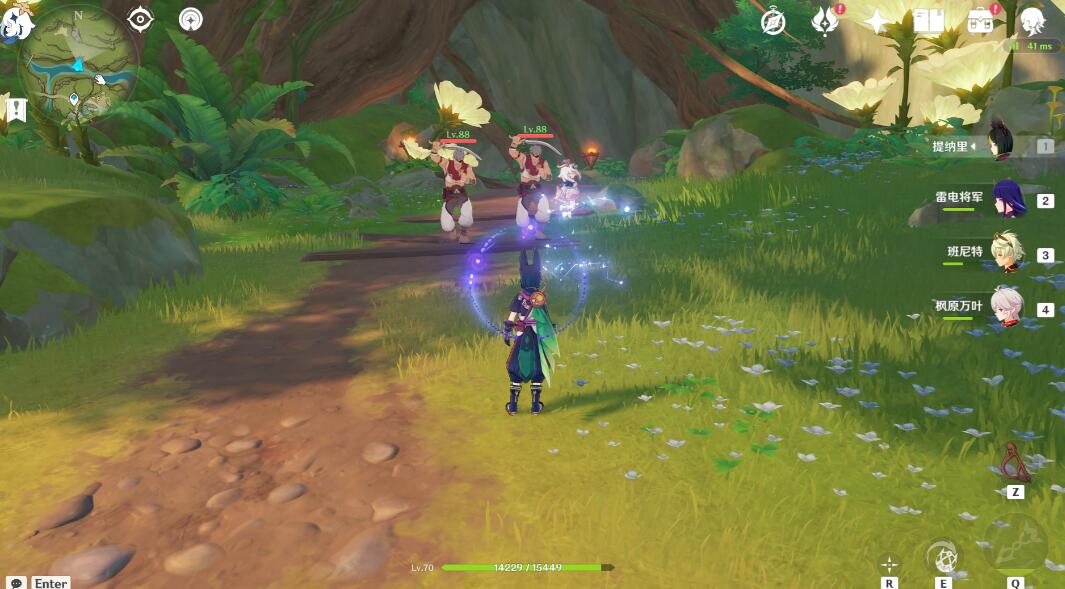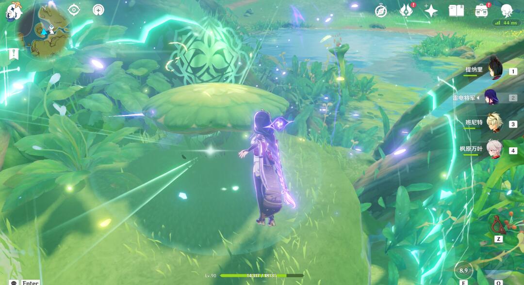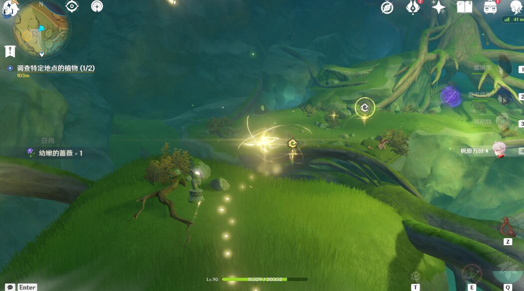 到达山下的跳菇这,用雷元素攻击一下然后跳到山顶