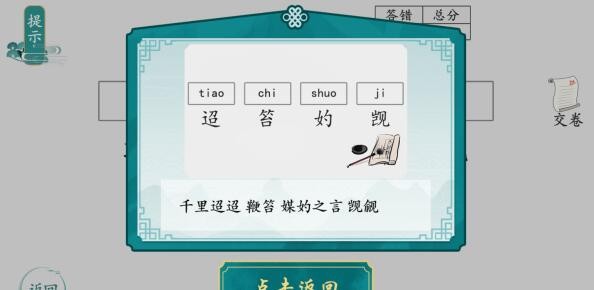 1、在游戏的首页面可以看到【迢】、【笞】等陌生的词语、