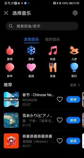 导入素材,点击音频--音乐,可以添加花瓣剪辑APP提供的音乐(发现音乐)或者本地音乐(我的音乐--本地)