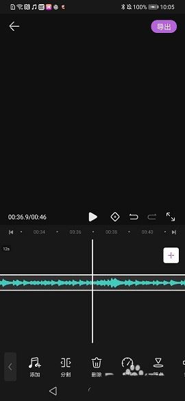 然后使用分割+删除截取自己想要的音乐片段。移动指针到想要的音乐片段起始位置,点击工具栏分割,音乐就被分割成2段。