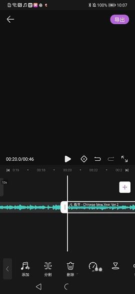 如果音频轨道超过主轨道时长,可以使用分割+删除去掉多余的音乐段。