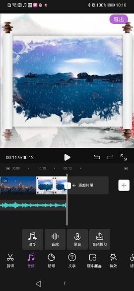 如果音频轨道超过主轨道时长,导出的视频后半段画面无内容有音乐,以黑色背景呈现。