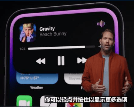 我们可以看到,当有来电、短信等通知时,灵动岛会变化它的形态,以便让用户能够更直观地接收到这些信息。而在用户使用一些软件并将其切换到后台时(如音乐),灵动岛也能以另一种形态来显示这些软件,并且用户还能只通过这个灵动岛对这些软件进行操作(如切歌)。