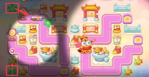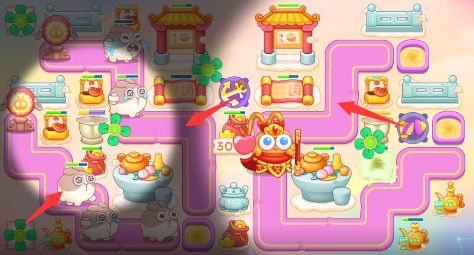 2、开局在左上角放置一个满级风扇清怪,左下角放置二级风扇开图。
