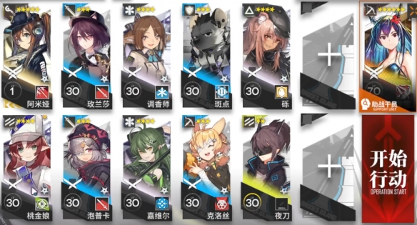 其他干员:执旗手、挡1近卫、群攻近卫、群奶、单奶、奶盾、单狙、工具人x2