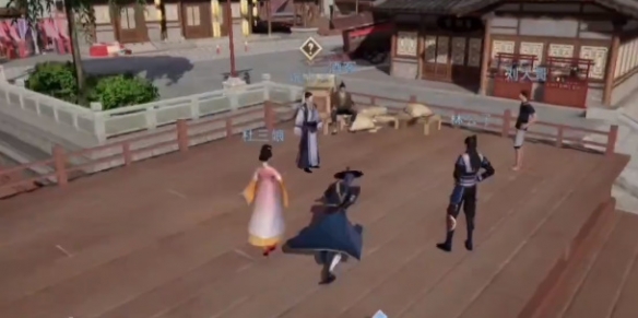 2、玩家需要前往东市码头的木栏杆这里,靠近以后会出现听书听书的交互字样。