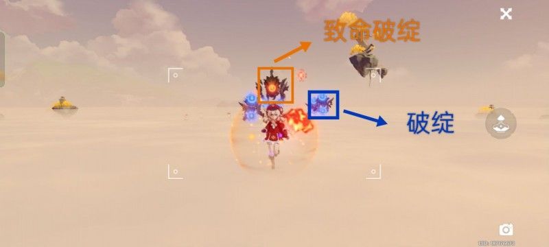 时停超感状态下进入静止拍照状态,可通过缩放与移动镜头,捕捉敌人的破绽(蓝色)与致命破绽(金色),并释放超感技能,对敌方造成高额伤害(金色破绽相当于两个蓝色破绽)。当捕捉到超过八个破绽时,超感技能增强。