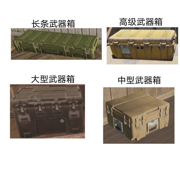 长条武器箱:会刷新枪械配件、中低质量子弹、医疗用品、耳机、军事用品