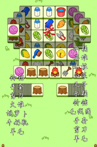 2、同层可以三消的就先消除同层,没有的话就需要查看下一层的物品,然后将需要的物品的上方的道具放置到槽中获得下方的道具。