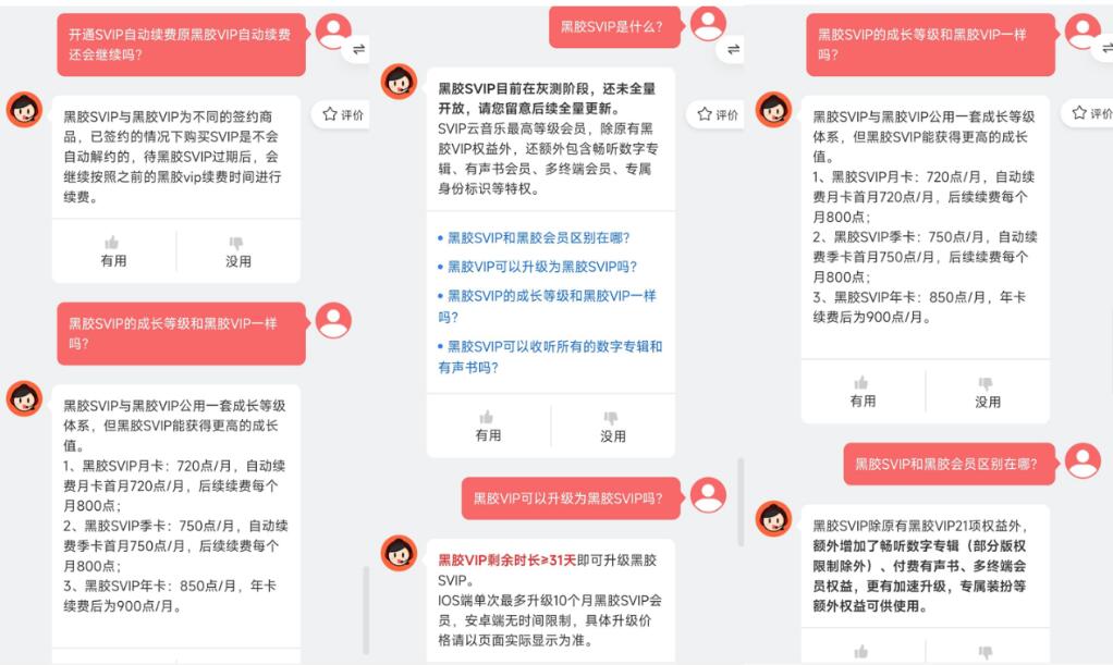 2、同时,SVIP和黑胶会员VIP也有一些对应的区别,如图所示。