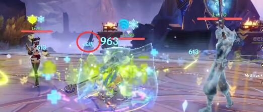 3、芭芭拉开E水环,在芭芭拉使用水环将敌人挂水之后,释放草种就会快速引爆然后再快速释放草种