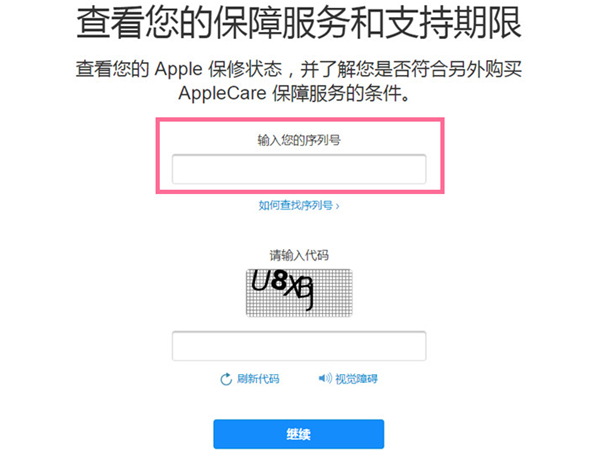 3、打开苹果中国官方网站的查看保障状态 网页(网址:https://checkcoverage.apple.com/cn/zh/),输入手机的序列号进行查询。