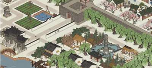 新增多个粉墙黛瓦样式的生产、居住、装饰、娱乐建筑。