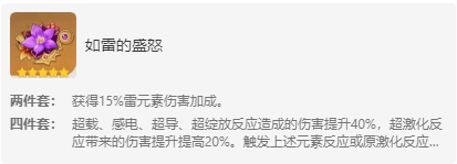 雷元素伤害加成。雷元素伤害提升,触发相关反应减少战技CD